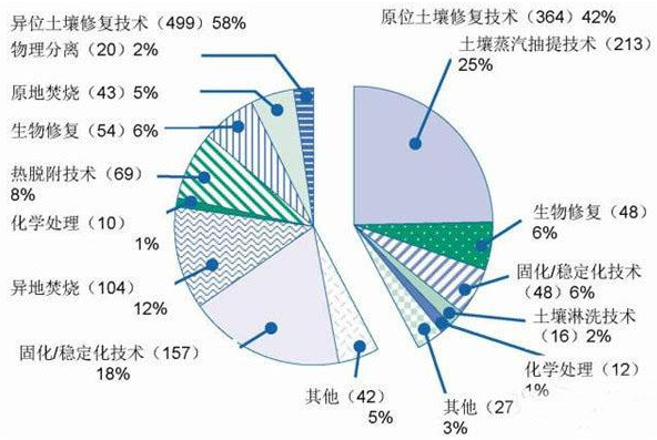 美國超基金場地修復項目技術使用分布圖