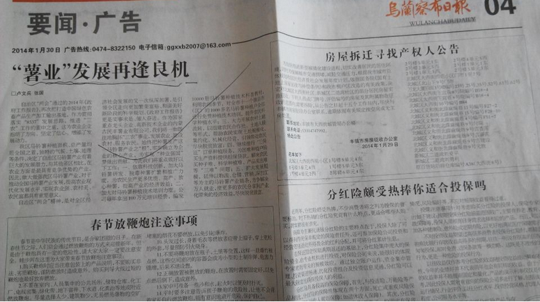 4月29日,農(nóng)民日報社、內蒙古日報社、烏蘭察布日報社、烏蘭察布電視臺等4家... [詳細信息]