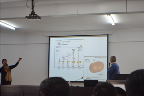 培訓會上,Harrie先生對馬鈴薯規(guī)范化種植管理的重要意義進行了深刻闡述,并就馬鈴薯各生長周期內(nèi)易發(fā)、頻發(fā)的病蟲害及其防治措施與馬鈴薯種植、生產(chǎn)全程現(xiàn)代化管理等內(nèi)容進行了講解,理論聯(lián)系實際,內(nèi)容詳實全面,得到了參訓學員的廣泛認可。培訓全程為英語授課,為了使參訓學員能夠真正聽得懂、學得會,公司特聘內(nèi)蒙古農(nóng)業(yè)大學農(nóng)學專業(yè)教授進行了全程翻譯。
