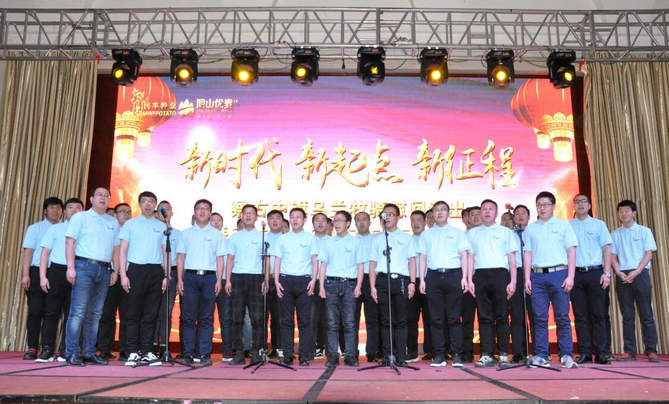 大會(huì)以播放短片的形式回顧了公司一年來(lái)的各項(xiàng)業(yè)務(wù)發(fā)展情況和取得的成績(jī)。副總經(jīng)理邰志東代表公司首先向全體人員致辭,而后在察右中旗烏蘭牧騎《時(shí)代贊歌》、《守望相助》的歌舞里拉開(kāi)序幕。頒獎(jiǎng)環(huán)節(jié),由22名優(yōu)秀行政管理人員、生產(chǎn)管理人員、生產(chǎn)服務(wù)人員、銷(xiāo)售人員和14個(gè)最佳效益獎(jiǎng)、最佳質(zhì)量獎(jiǎng)、最佳合作伙伴獎(jiǎng)、優(yōu)秀團(tuán)隊(duì)獎(jiǎng)、董事長(zhǎng)特別獎(jiǎng)的獲獎(jiǎng)代表上臺(tái)接受了公司各級(jí)領(lǐng)導(dǎo)的頒獎(jiǎng)和祝賀。同時(shí),原種生產(chǎn)管理中心、脫毒組培中心、原種生產(chǎn)管理中心、物流倉(cāng)儲(chǔ)中心用《民豐之歌》和《民豐我們的家》兩首大合唱表達(dá)了對(duì)公司的贊美和熱愛(ài)之情。最后,大會(huì)在烏蘭牧騎《在你偉大的懷抱里》的舞蹈里走向高潮。表彰大會(huì)和文藝演出穿插進(jìn)行,環(huán)環(huán)相扣,方式新穎,得到了全體員工的一致好評(píng),也為即將開(kāi)始的新春生產(chǎn)種植工作注入了活力,帶來(lái)了動(dòng)力。